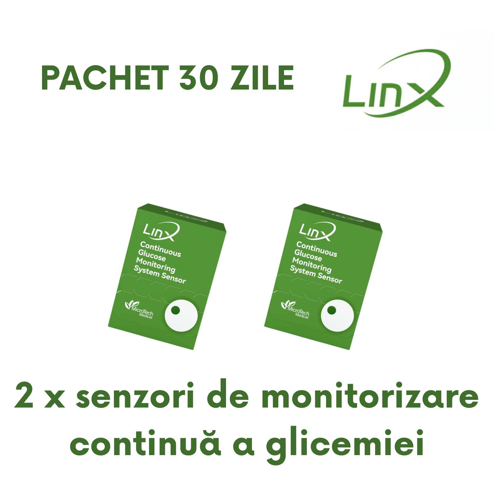 Linx CGM, oferit de GlucoPro, este un senzor avansat pentru monitorizarea glicemiei, oferind citiri precise și fiabile. Se aplică ușor și are o durată de utilizare de până la 15 zile, asigurând confort și control constant al glicemiei.